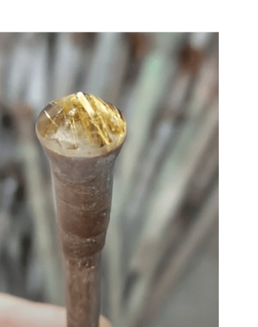 O último passo da lapidação é o polimento final, também conhecido como cintura. Nessa etapa, o lapidador realiza os ajustes finais e dá o polimento necessário em toda a superfície da gema, incluindo a cintura (a borda da pedra).
