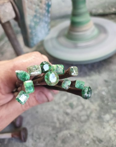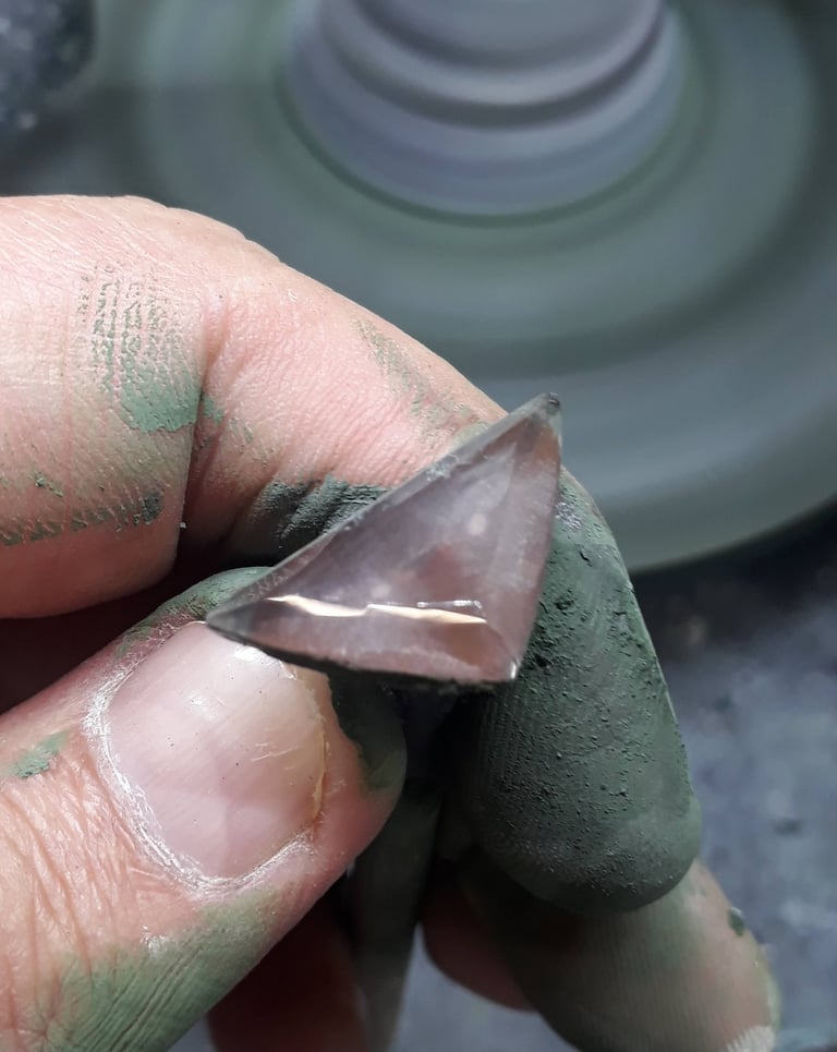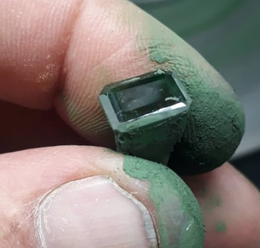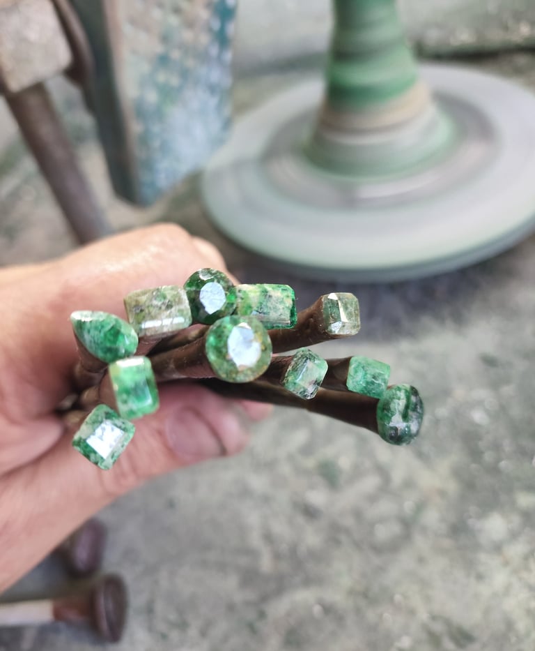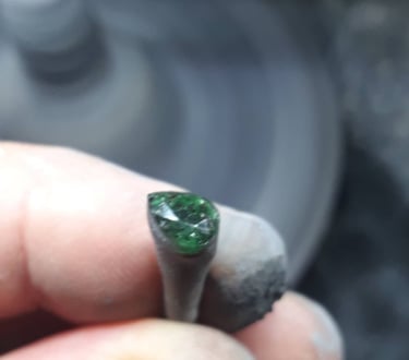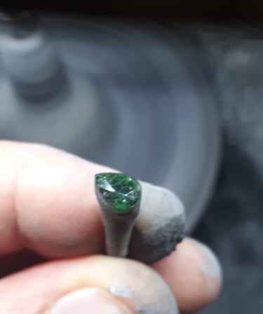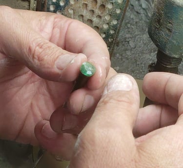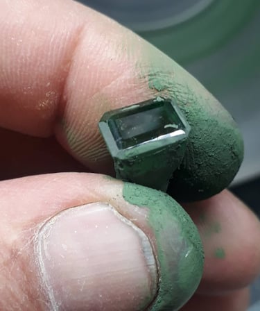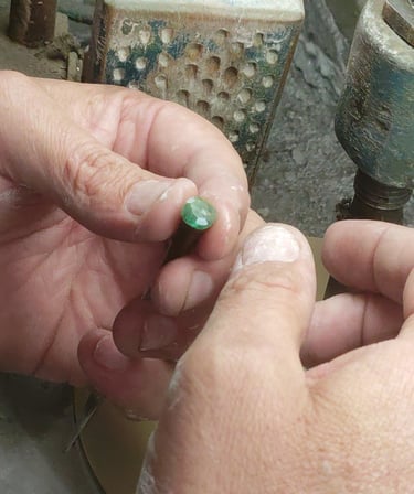 Esse processo é minucioso e feito com muita paciência, pois o brilho final da pedra depende da perfeição de cada polimento. Quanto mais bem polida, maior será a refração da luz e, consequentemente, o brilho da gema. Essa é uma etapa de transformação visível — a pedra começa a ganhar vida, refletindo luz e revelando sua beleza.